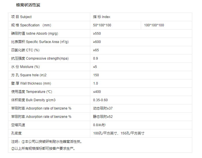 蜂窝状活性炭很大的特点就是净化效果好,风速阻力小,完全可以达到国家废气排放标准。